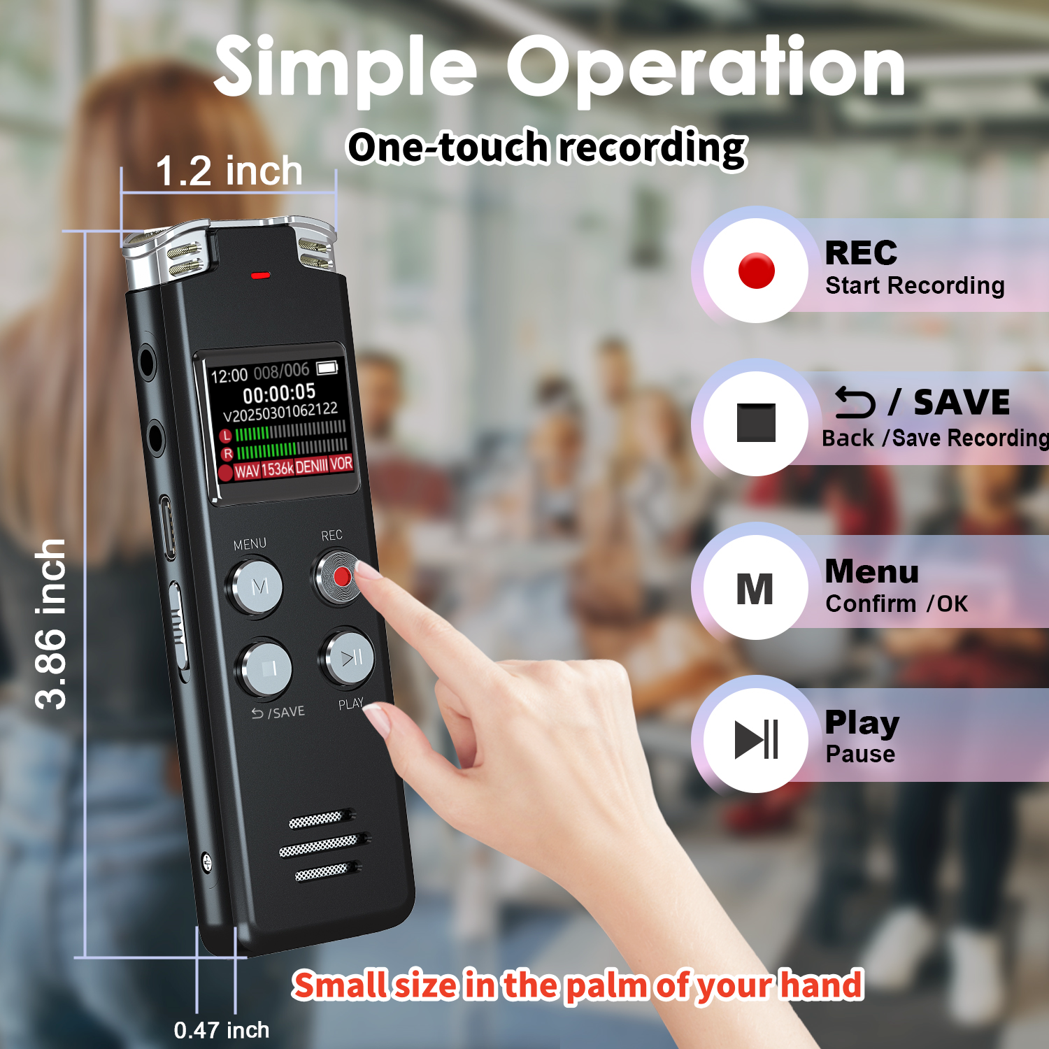 EVISTR digital recorder just 2 buttons: press rec to start recording immediately; press save button to save recording. You can choose the recording format as wav/mp3; EVISTR voice recorder with playback support A-B repeat, playback, rewind, and variable speed playback; can set to record in time slots and auto-record to customize your recording schedule. The optimized menu interface is clearer and provides you with more intuitive and efficient navigation of functions